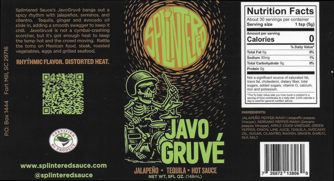 Splintered Sauce’s JavoGruvé bangs out a spicy rhythm with jalapeños, serranos, and cilantro. Tequila, ginger and avocado oil slide in, adding a smooth swagger to keep it chill. JavoGruvé is not a cymbal-crashing scorcher, but it’s got enough heat to keep the temp hot and the crowd moving. Rattle the toms on Mexican food, steak, roasted vegetables, eggs and grilled seafood.